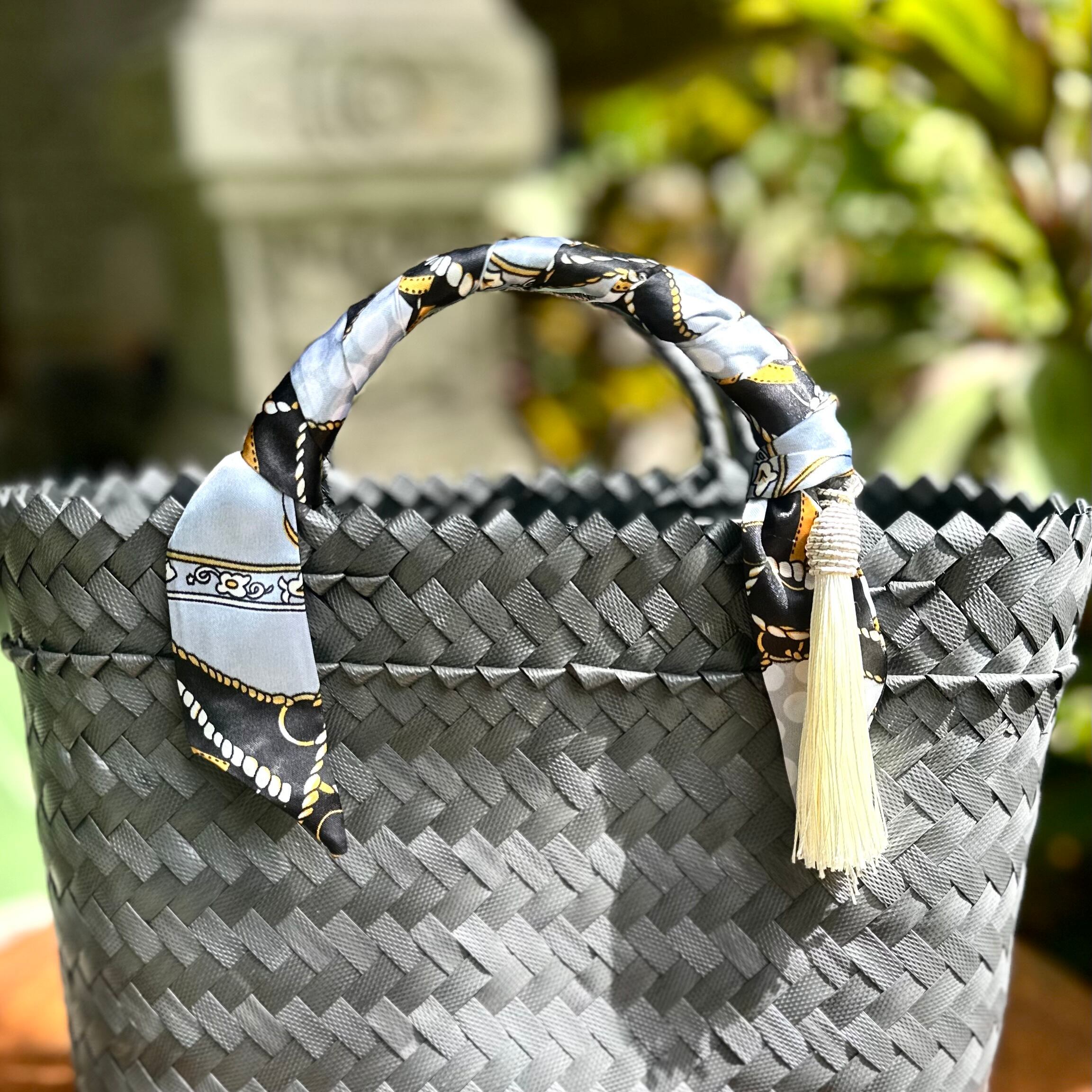 インドネシアでは、市場へ買い物に行く時に女性達が持っていくカゴバッグを普段使いできる可愛いカラーにアレンジしています。