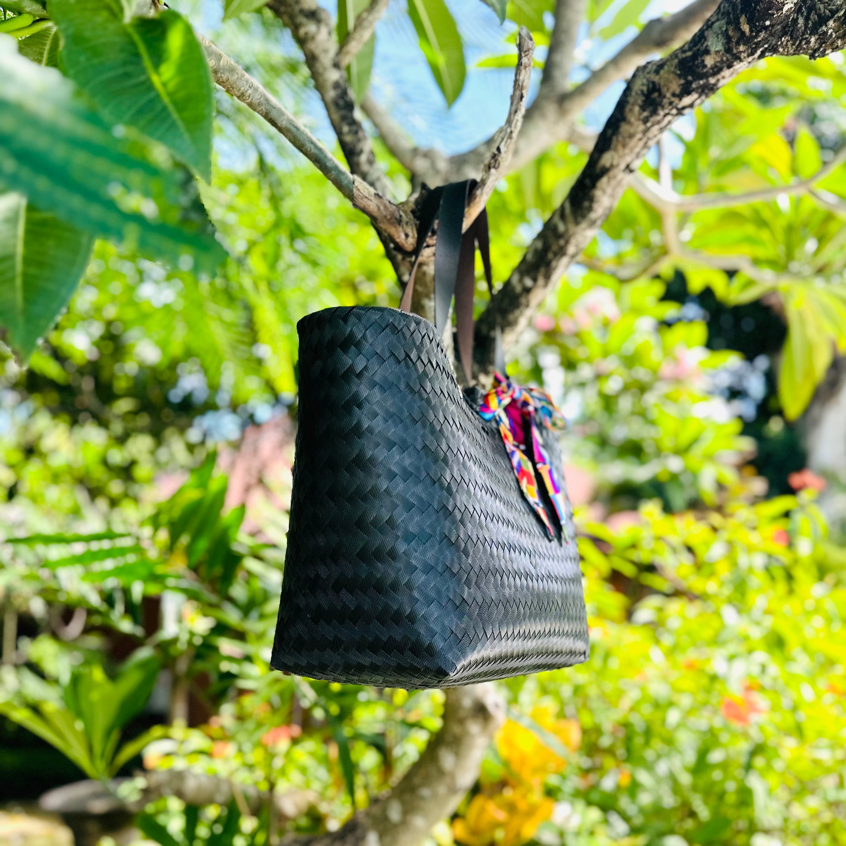 バリ×パリ♡ 奇跡のメダイ付きパサールバッグ大 ブラック【バリ島&フランス】