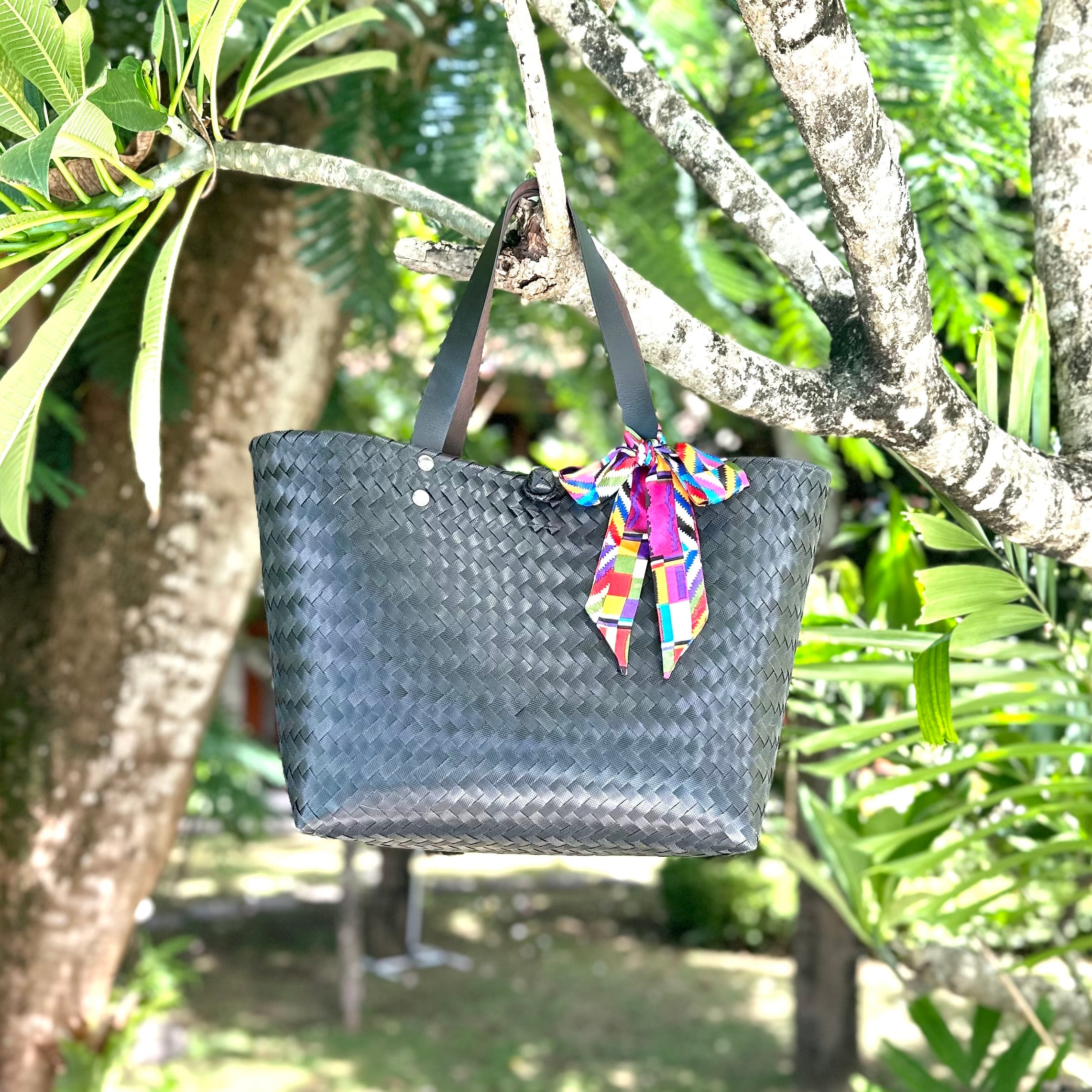 プラスチックテープで編まれていてとても丈夫!