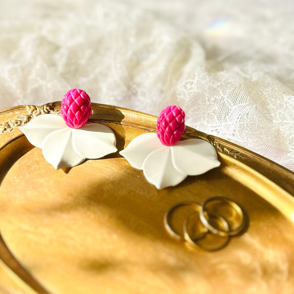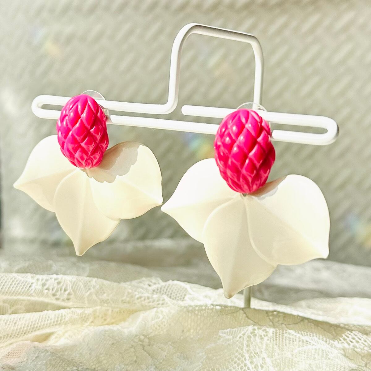 ピンクとホワイトのコントラストが目を引く大ぶりのピアスです。